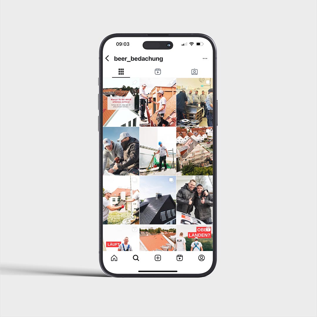 BEER Bedachung war regional bereits sehr bekannt, da das Unternehmen seit über 100 Jahren und heute in dritter Familiengeneration besteht. Ziel ist es bis heute ein wiedererkennbares Erscheinungsbild zu etablieren, das sowohl Kunden, Fachkräfte als auch Auszubildende anspricht und sich einfach in print und online schalten lässt. Mit kreativen Ideen und Partnerschaften in der Region entstehen hier immer neue Ergebnisse.